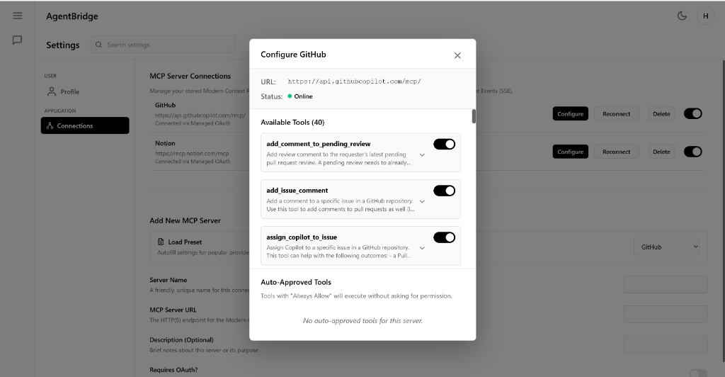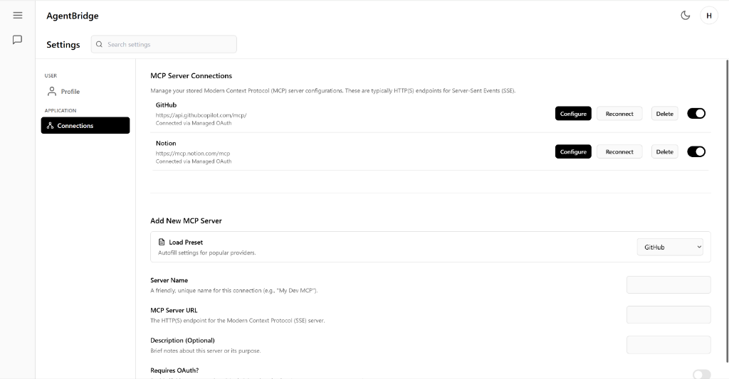 - Integration with remote MCP servers via SSE