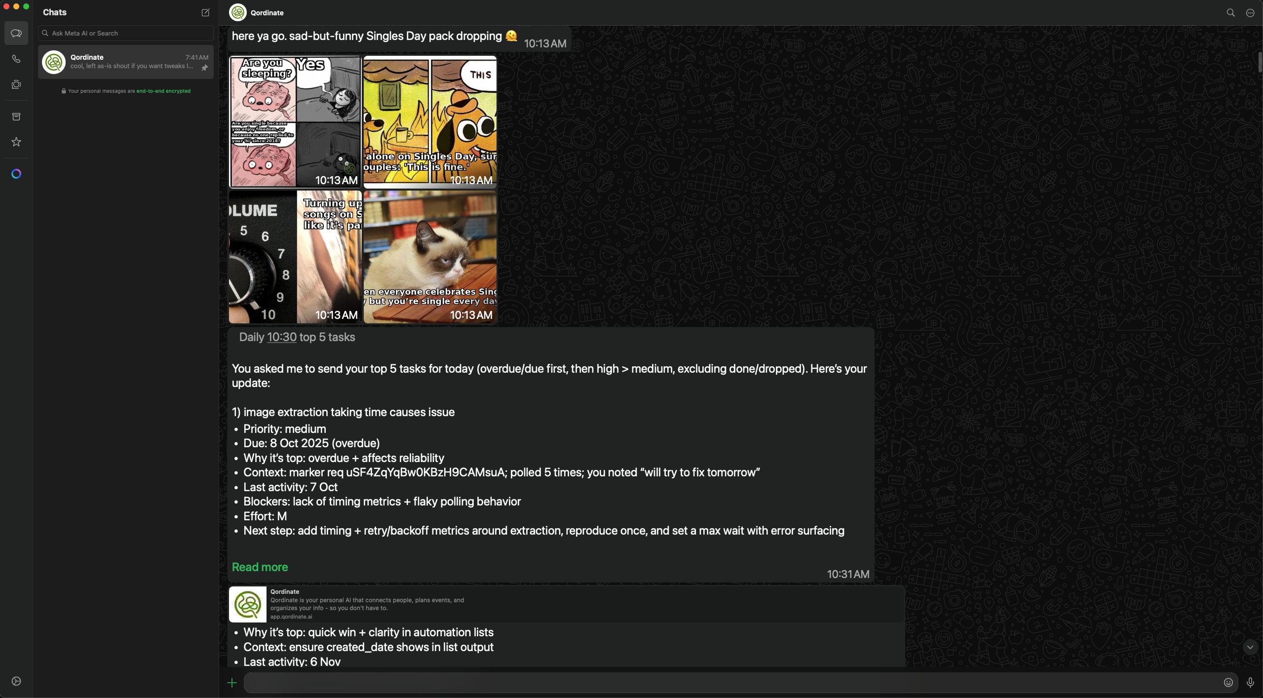 Qordinate is a personal assistant that talks on your behalf, it knows what to share, when to share and with whom to share. It's available across WhatsApp and Arattai today, with other platforms coming soon. Learn more.