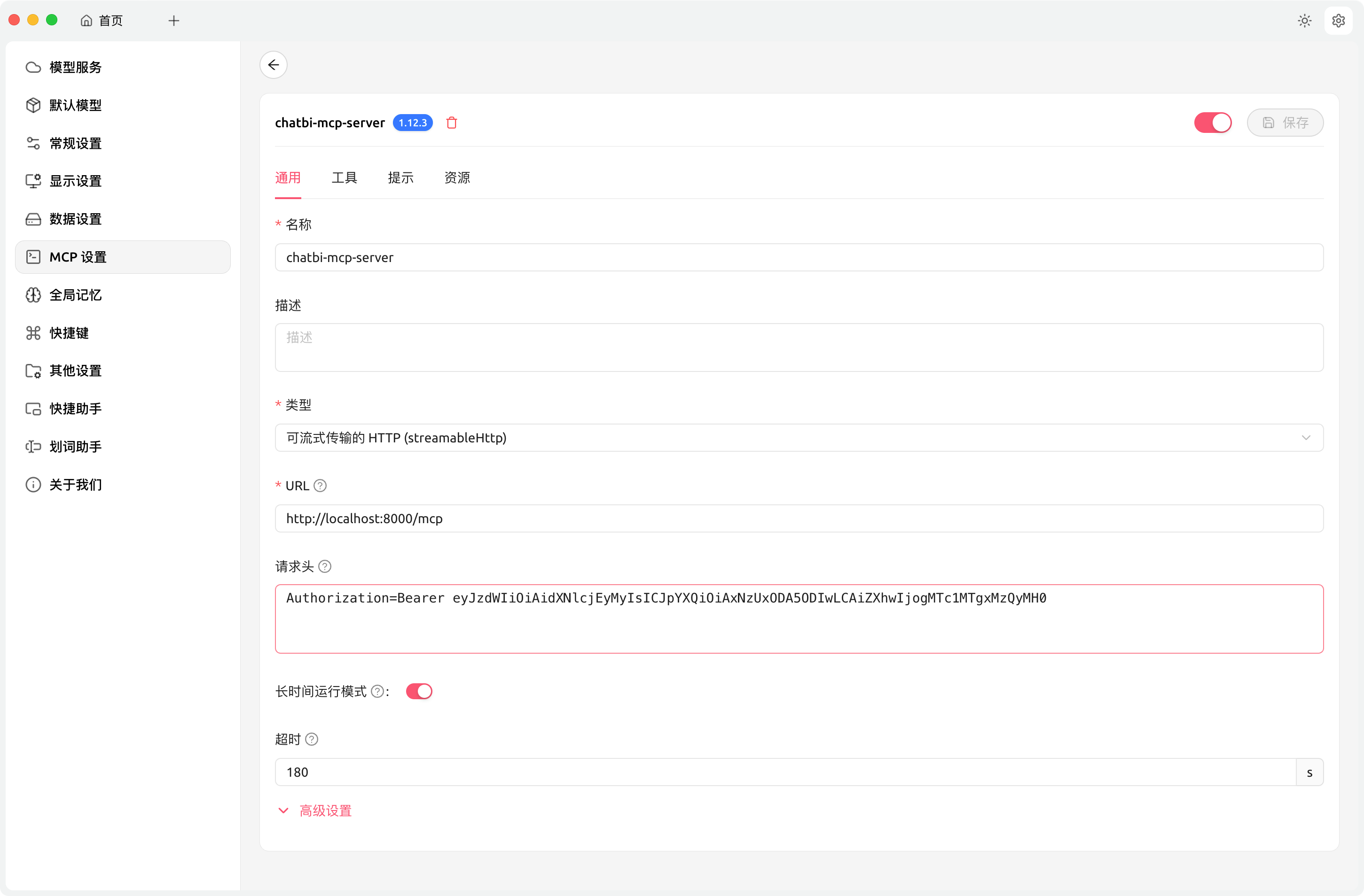 使用任意支持MCP Server的客户端,比如Cherry Studio,配置如下: