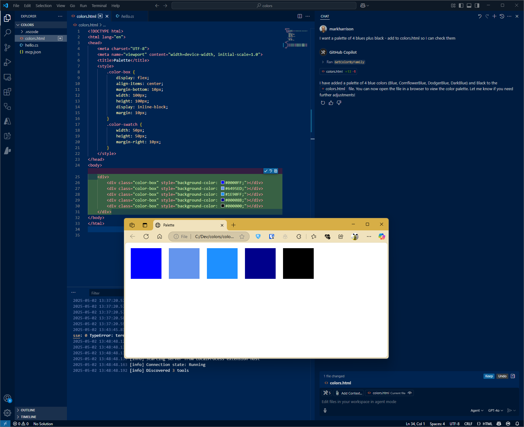 docker run -p 3000:8080 -p 3001:8081 -d colorsmcp-http:latestVSCode config