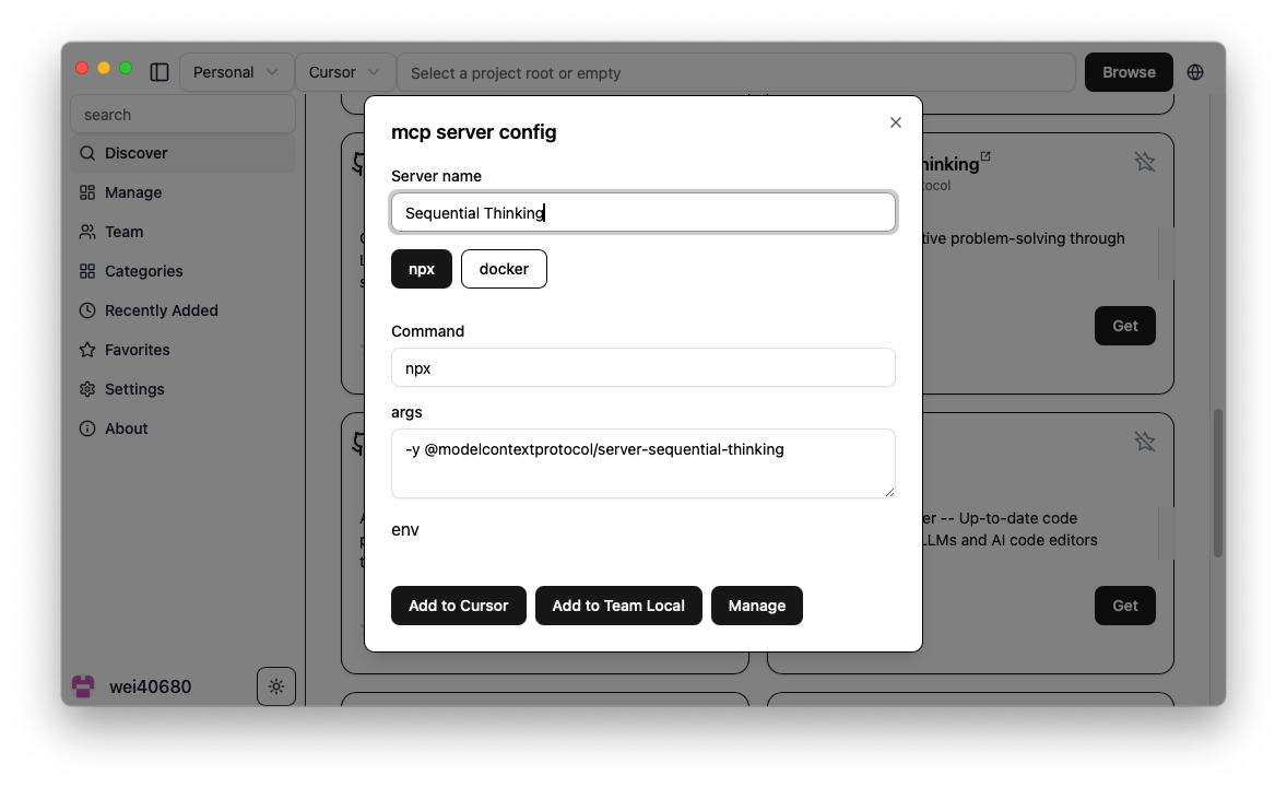 - 600+ Curated MCP Servers β Built-in marketplace with sequential-thinking, desktop-commander, and more