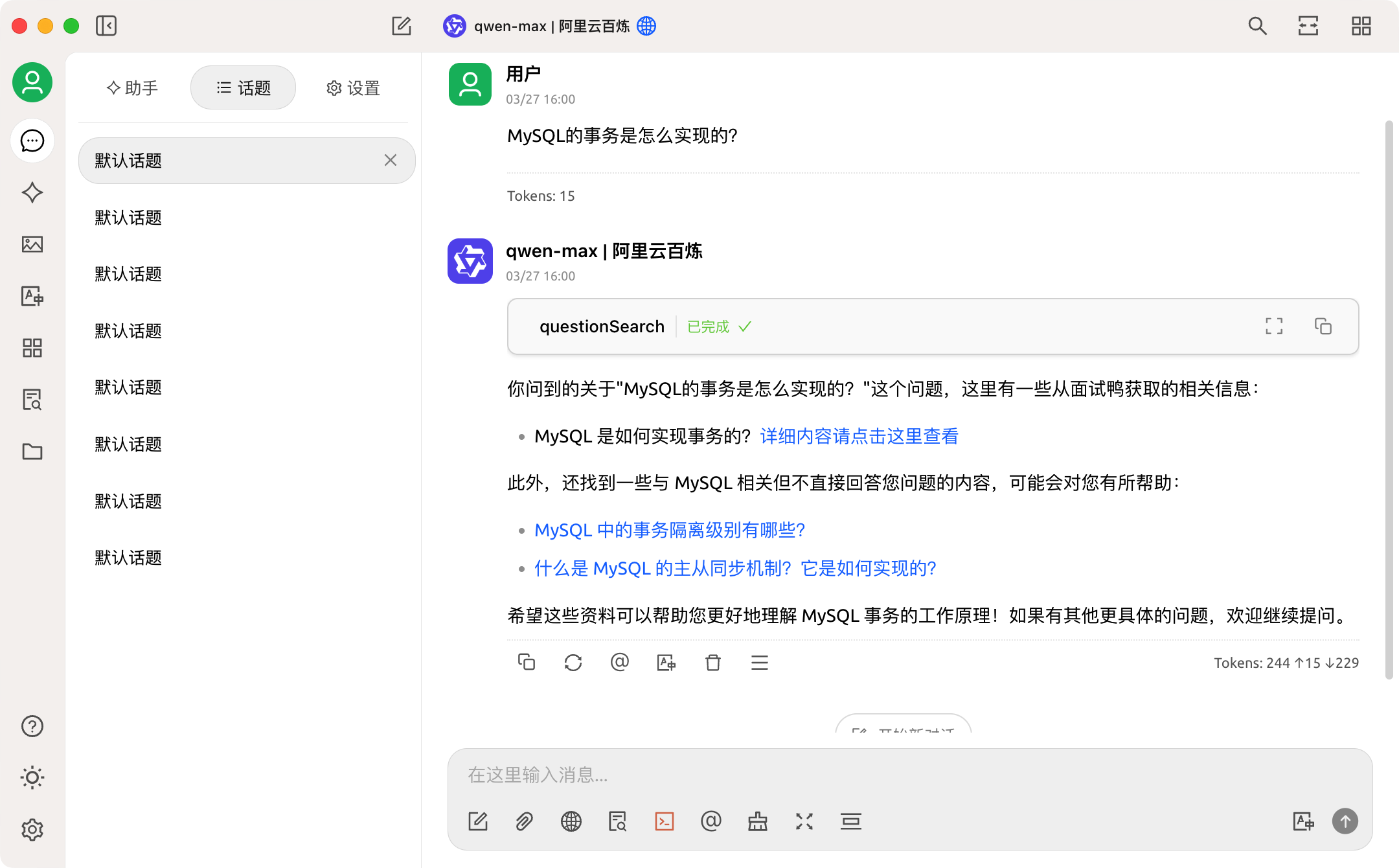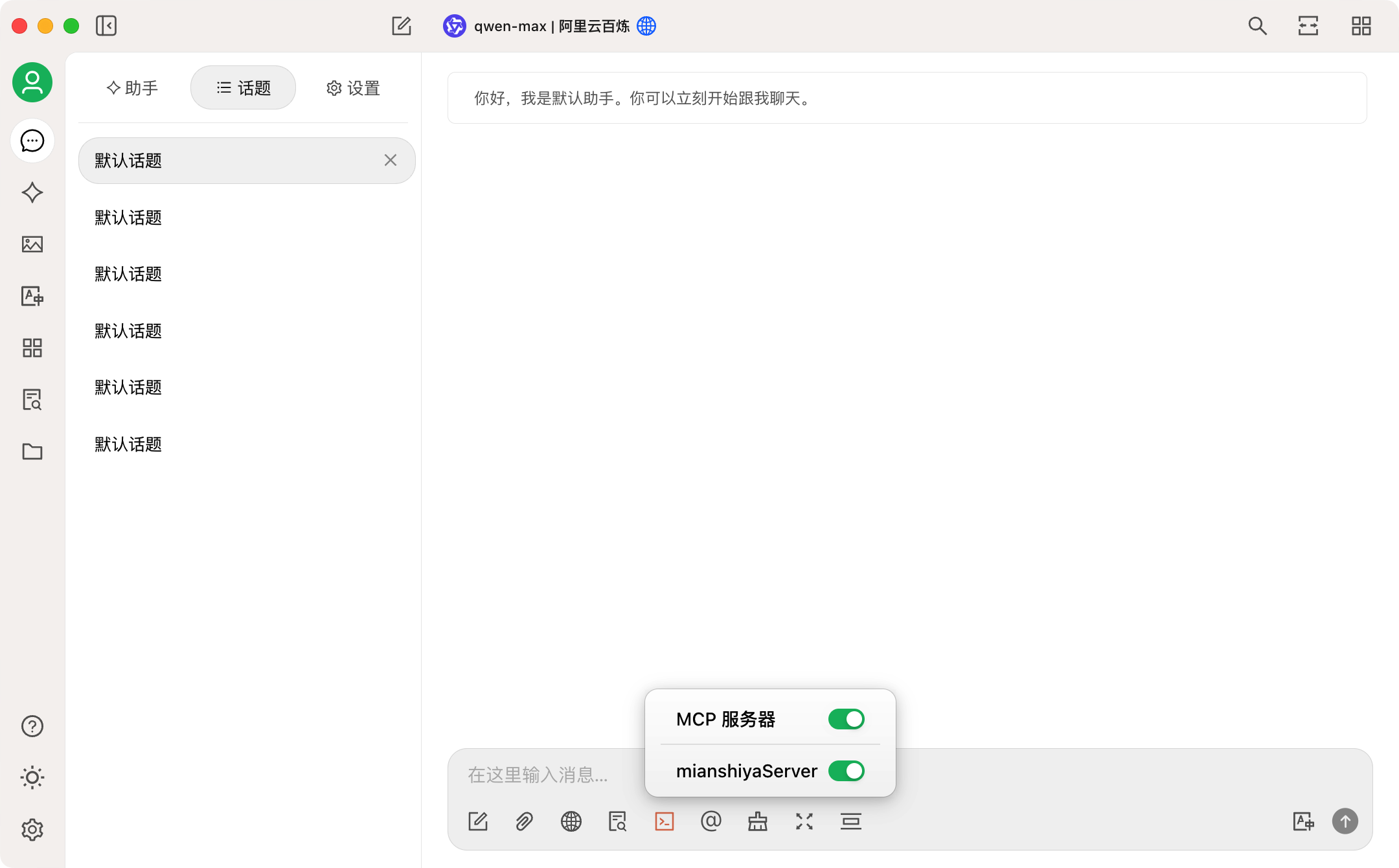 4) 在输入框下面勾选开启MCP服务。