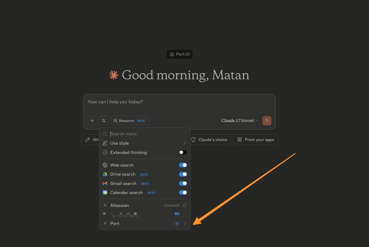 4. In a new chat, check the Tools section and you'll see Port available tools.